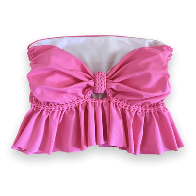 This non-traditional method of crocheting was invented when we were making bikinis and needed yarn that was good for swimwear. Our inspiration lead us to make clothing using the same process and we created a unique line of fully reversible matching sets, separates and accessories.