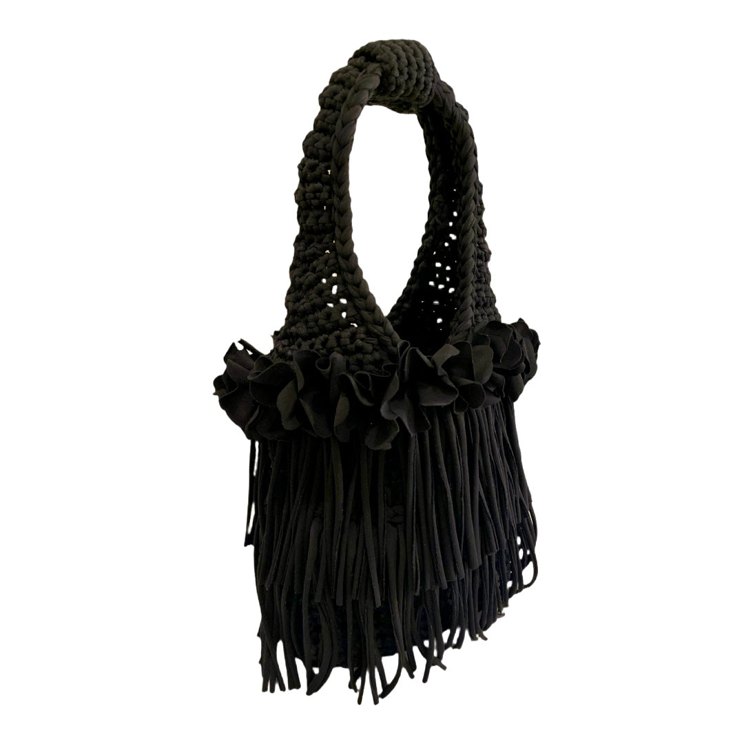 ∞ HAND CROCHETED DOUBLE FRINGE FLOWER TOTE ∞