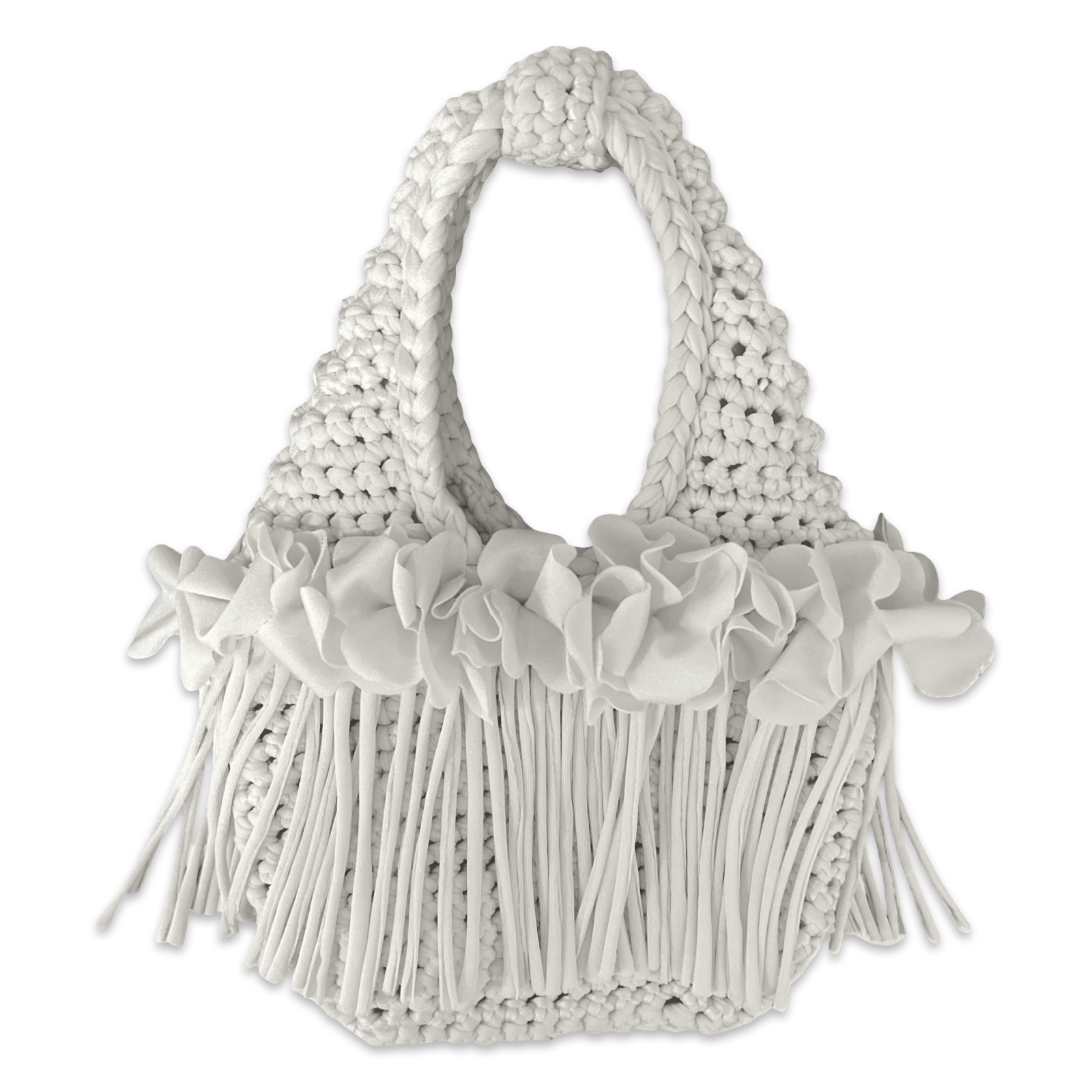 CROCHETED MINI FLOWER FRINGE WRISTLET • white