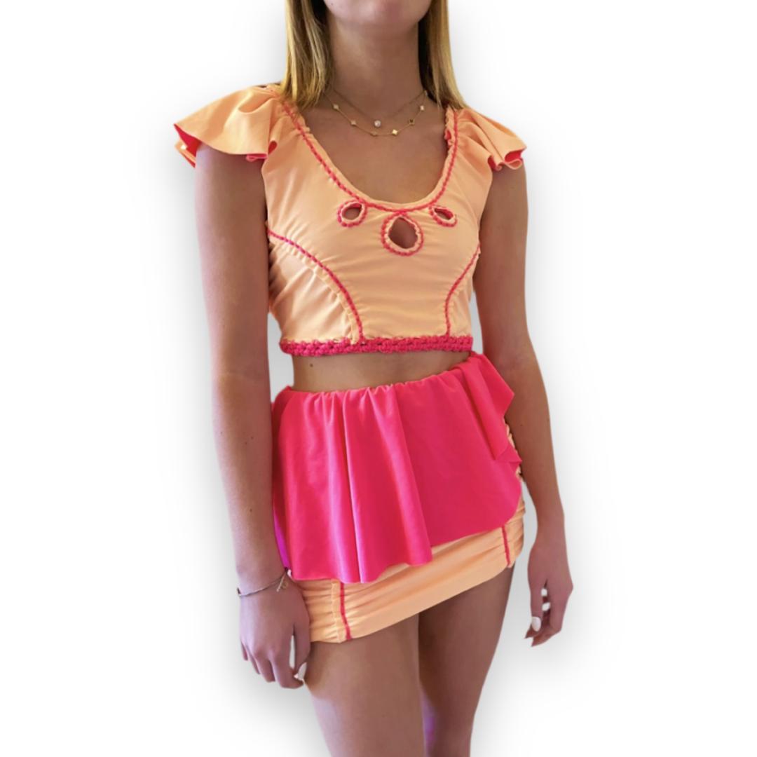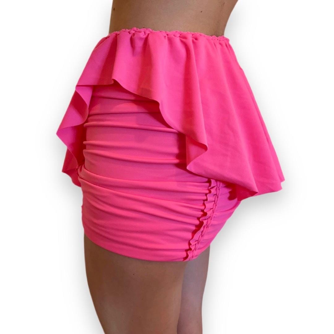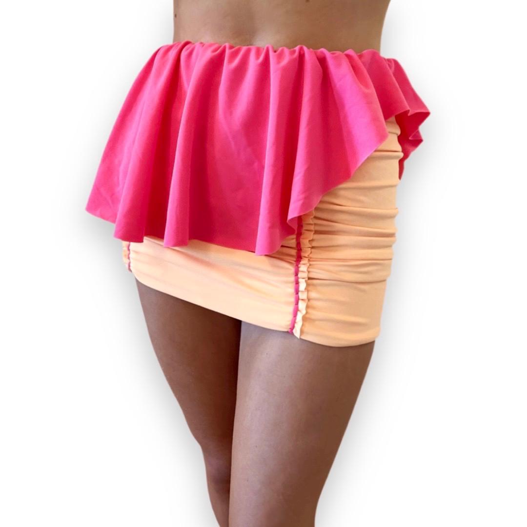 REVERSIBLE MINI PEPLUM SKIRT • hot pink and bright peach