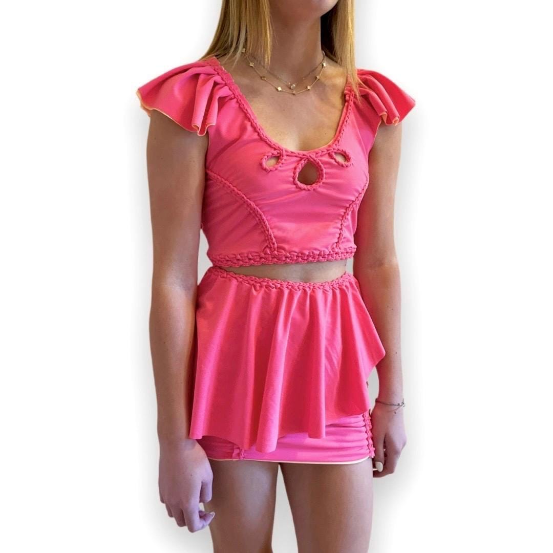 CROCHETED RODEO FLUTTER SLEEVE TOP • hot pink and bright peach